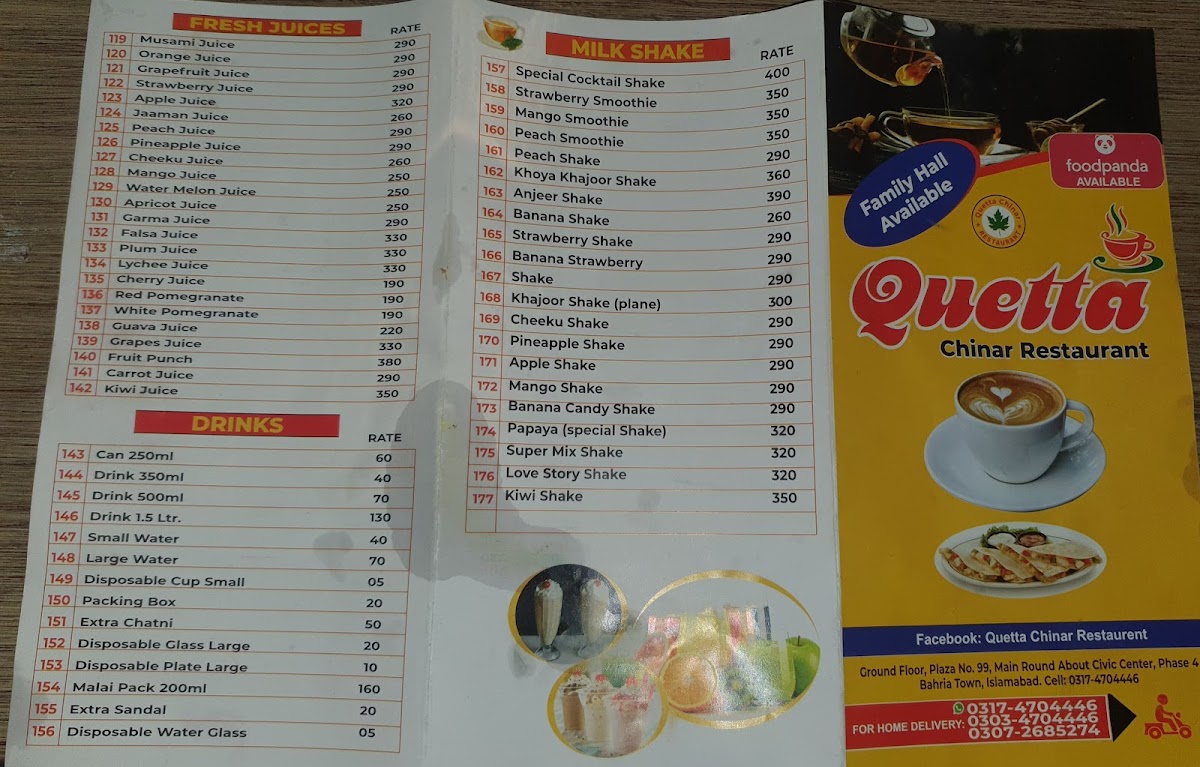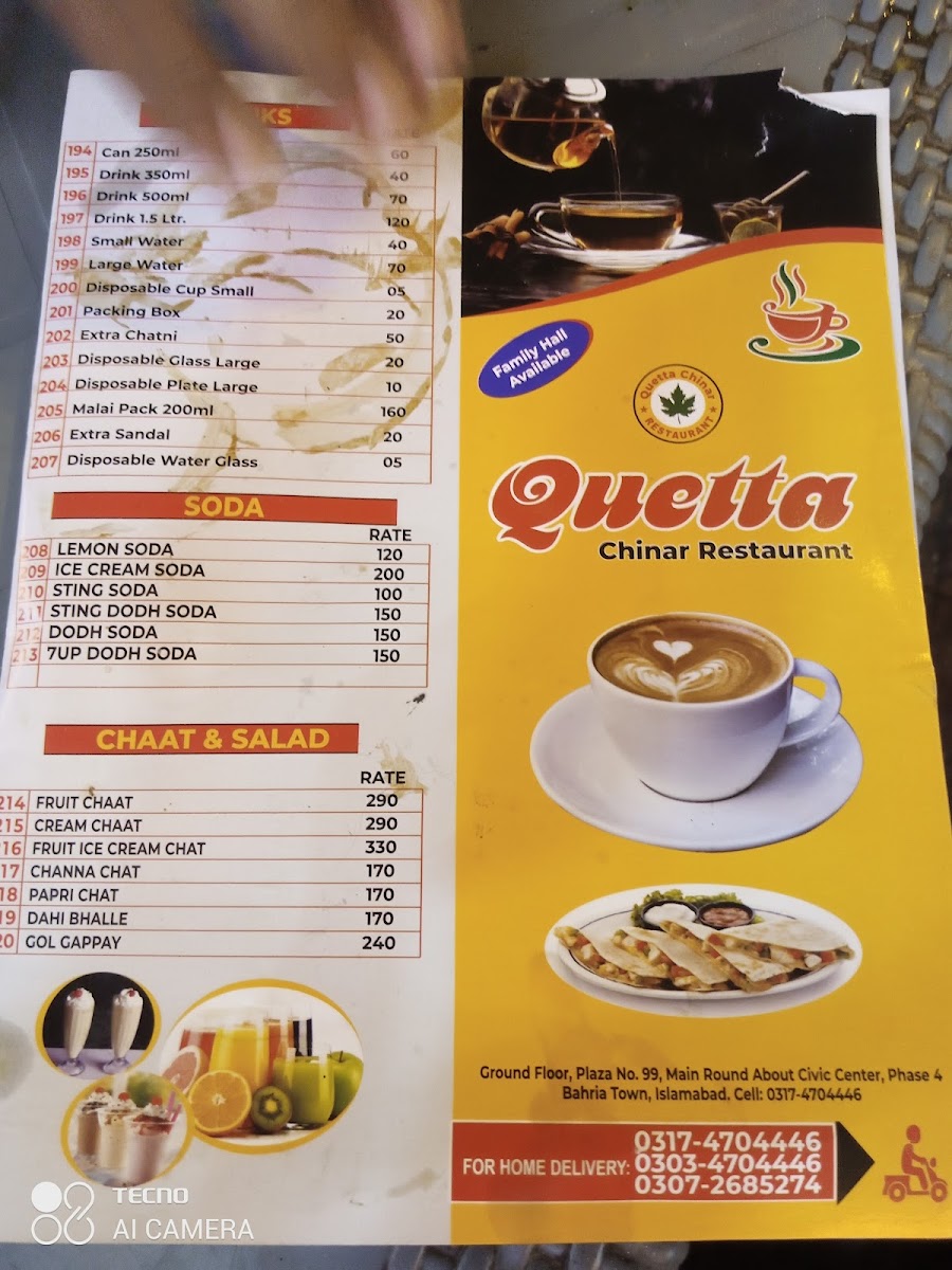 Welcome to Quetta Chinnar Restaurant, a culinary gem nestled in the Civic Center, Phase 4 of Bahria Town, Islamabad. This restaurant is celebrated for its mouth-watering menu that highlights the essence of Pakistani cuisine, particularly known for its delectable Quetta tea. Whether you opt for the soothing Doodh Patti Gur Tea or the aromatic Cardamom Elaichi Tea, each sip feels like a warm embrace.
